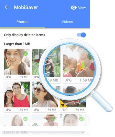 Bekijk een voorbeeld van herstelbare foto's, video's, contacten, oproeplogboeken, sms- en WhatsApp-berichten om ervoor te zorgen dat u verwijderde bestanden terug kunt krijgen. Ga je gang om verwijderde bestanden met één klik te herstellen. Sla daarna de herstelde bestanden op een specifieke locatie op en bekijk ze om alle gegevens te controleren