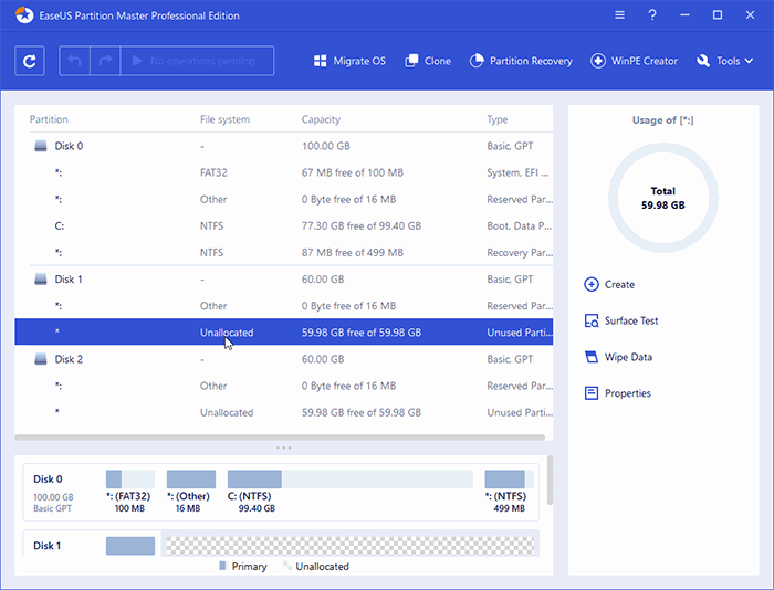 EaseUS Partition Master Home Edition is een freebie waarmee je niet alleen partities kunt maken zonder gegevensverlies binnen Windows, maar ook beschikt over partitie- en schijfkopieerwizards, waardoor het gemakkelijk wordt om harde schijven te klonen of er snel een back-up van te maken.
